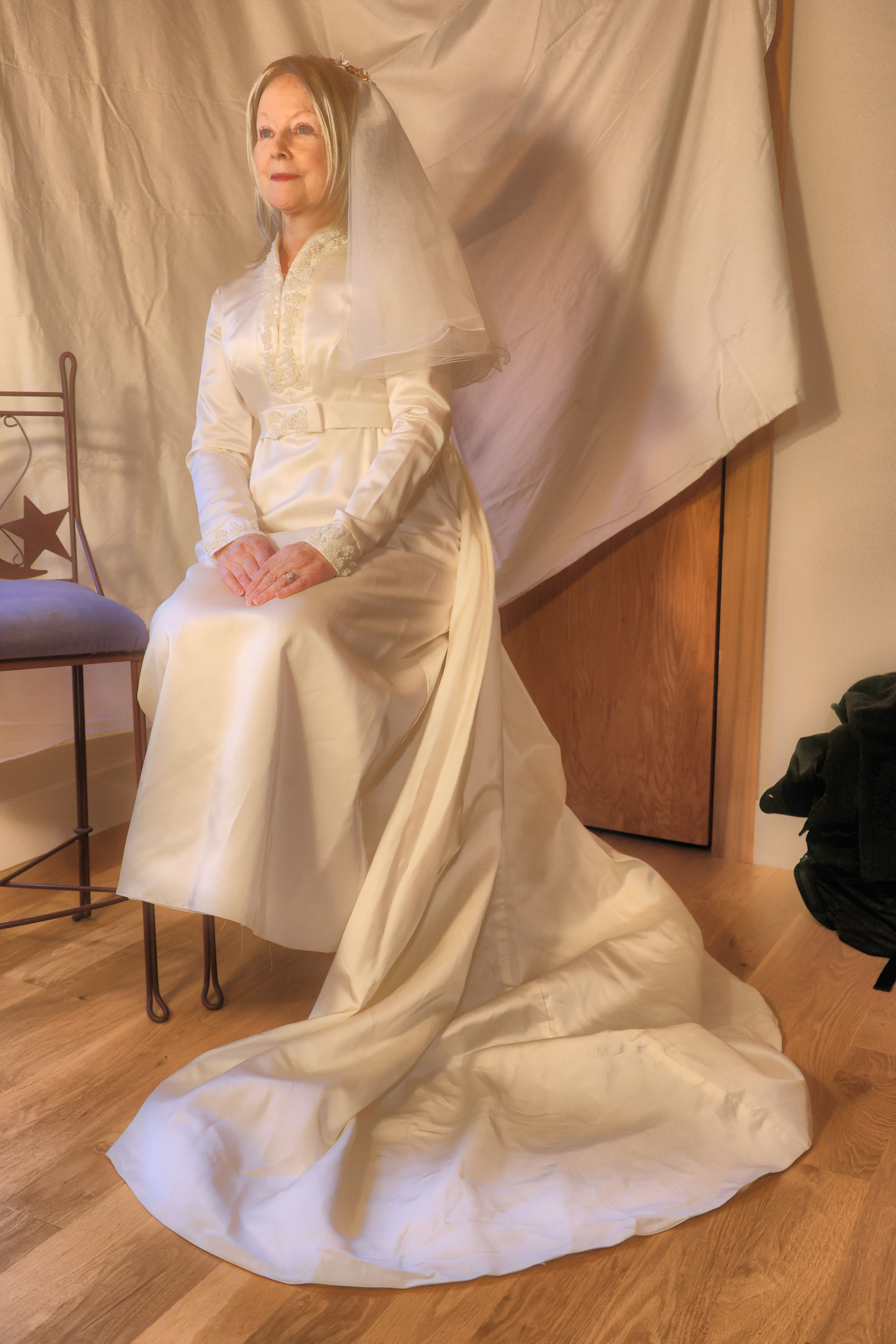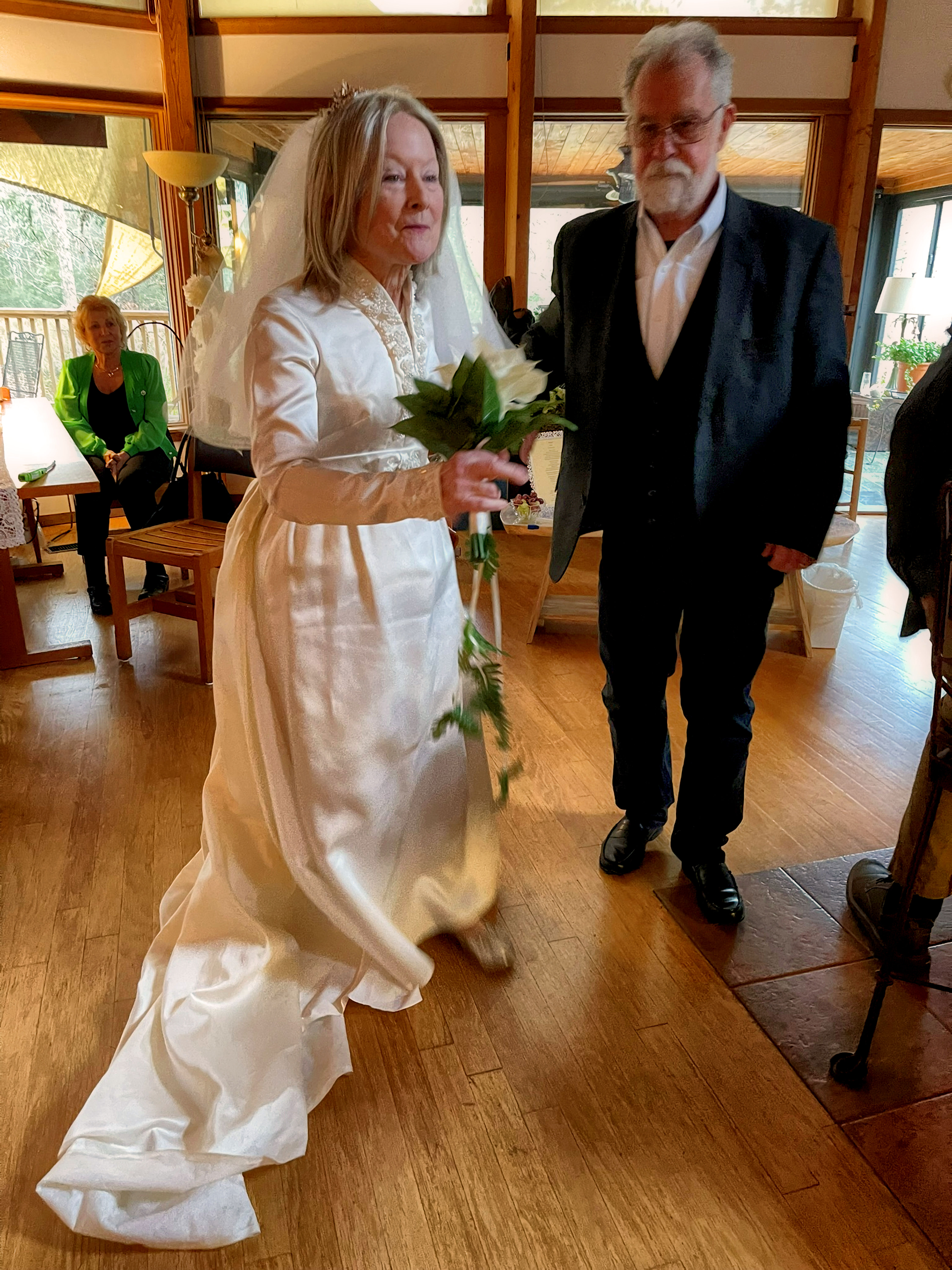 Nancy getting ready to throw the bouquet